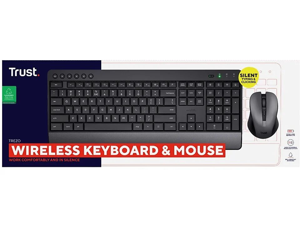 Werk comfortabel en stil met de Trezo Comfort Toetsenbord -en Muisset. Dankzij ons stilste toetsenbord en onze stilste muis ooit ben jij in elke stilteruimte meer dan welkom.
