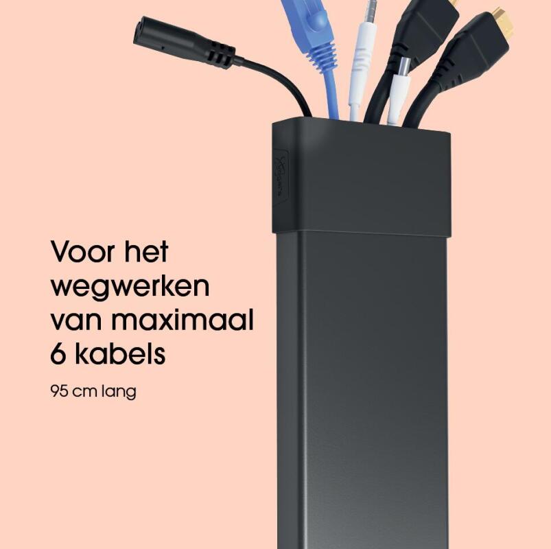 De Vogel's TVA 7000 wit is gemaakt van hoogwaardig aluminium, waardoor het niet alleen duurzaam is, maar ook een luxe uitstraling heeft. Deze kabelgoot kan tot 6 kabels verbergen, waaronder HDMI-kabels, netwerkkabels en audiosnoeren. Met een lengte van 95 cm is het eenvoudig in te korten naar de gewenste maat, wat het ideaal maakt voor verschillende installaties.