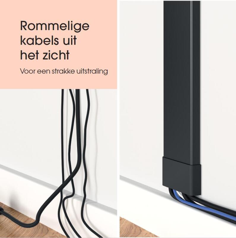 De Vogel's TVA 7000 wit kabelgoot is ontworpen met gebruiksgemak in gedachten. De verpakking bevat kabelklemmen die het geleiden van de kabels door de goot vergemakkelijkt. Daarnaast zijn er 2 covers inbegrepen om de uiteinden van de goot netjes af te werken. Dit zorgt voor een professionele afwerking van je opstelling, waardoor je met trots kunt genieten van je TV-setup.