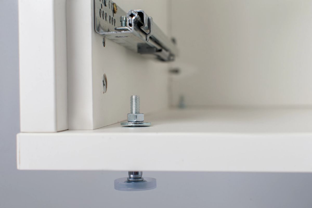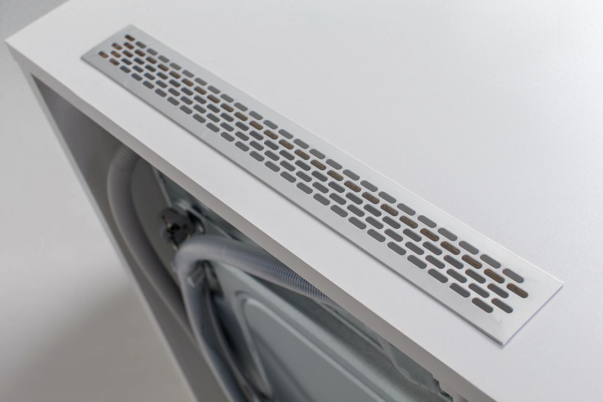 Door de speciale opbouw van de kast worden trillingen geabsorbeerd. De kast is vervaardigd uit 22mm dik hoogwaardig plaatmateriaal met een melamine coating, net zoals veel badkamer- en keukenkasten. Hierdoor is de kast vochtbestendig. De machine komt op een metalen bodemplaat met opstaande randen te staan, zodat er geen vocht in de kast kan lopen. Aan de voorzijde van de machine wordt een kiepzekering geplaatst, zodat je zeker weet dat de machine niet uit de kast kan vallen. Aan de bovenzijde is de kast voorzien van een ventilatierooster.