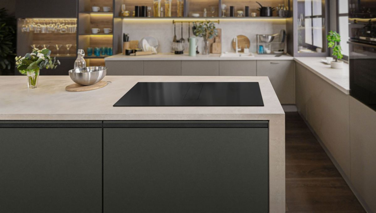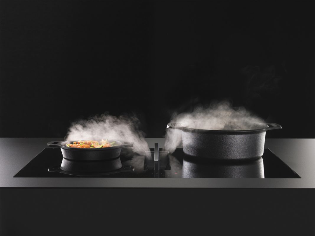 Is de keuken geurvrij, zorgt een glazen grid ervoor dat de afzuiging hermetisch gesloten wordt. Wat overblijft is een strakke, stijlvolle kookplaat. Maximaal minimalistisch.