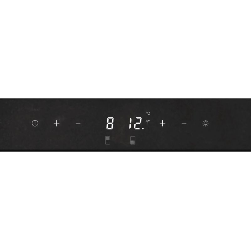 Deze wijnklimaatkast is uitgerust met een zwarte deur en voorzien van een push systeem om de deur te openen.
