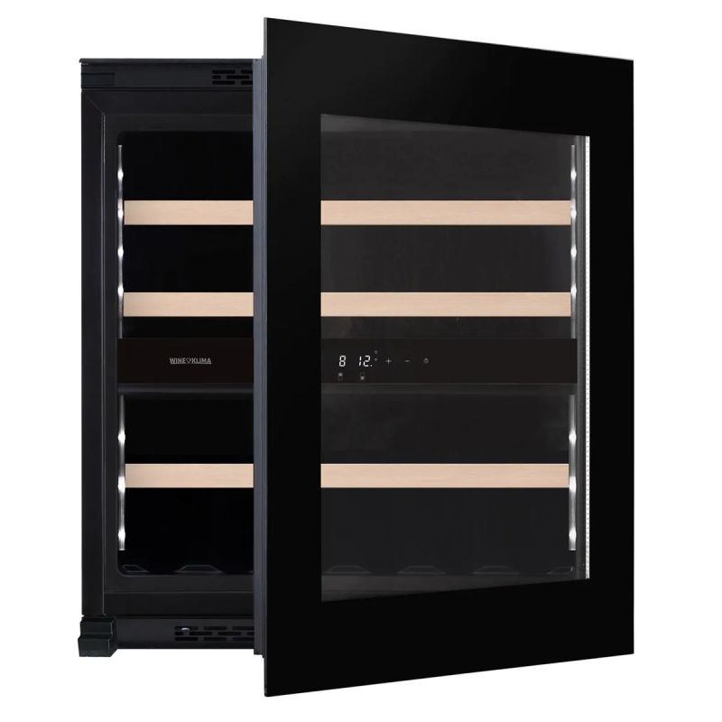 Deze luxe wijnklimaatkast heeft een zwarte deur heeft alle features zoals UV filter, koolstoffilters, open deur alarm, automatisch dimmend licht. De lades worden soepel en ver uitgetrokken door de telescooprails en de deur is greeploos te openen door het push-systeem.